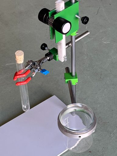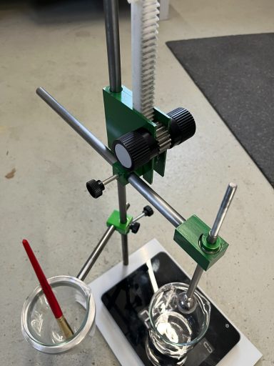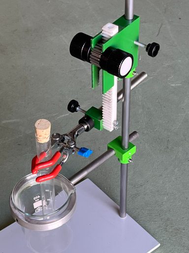 Unsere Hebe- und Senkvorrichtung ermöglicht das millimetergenaue Anheben und Absenken verschiedenster Laboranwendungen. Das System ist als Gebrauchsmuster angemeldet und überzeugt durch präzise Handhabung und flexible Einsatzmöglichkeiten.